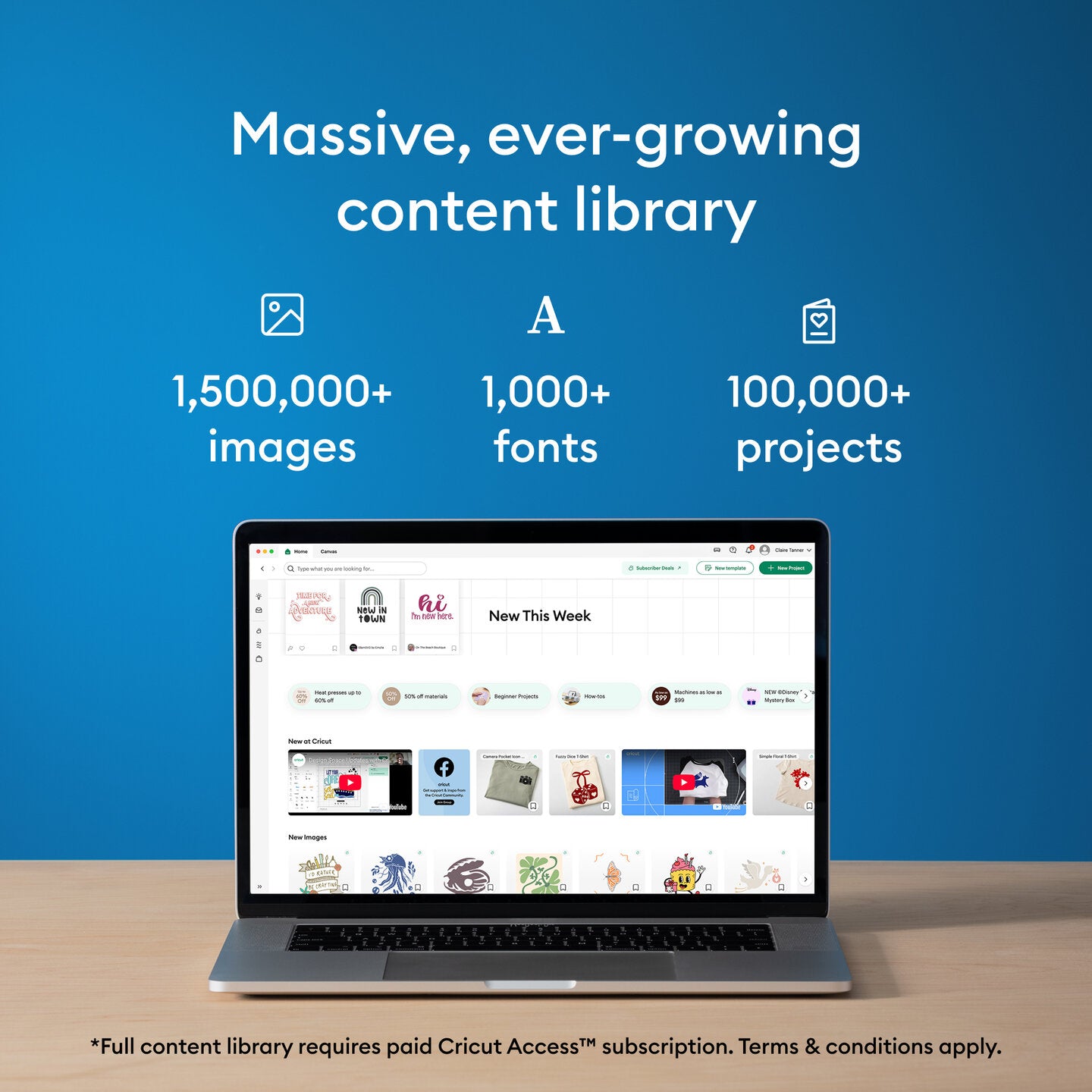 - CREATE WITH OVER 1.5 MILLION IMAGES*: The ever-growing Design Space content library includes a total of 1,500,000+ images, 1,000+ fonts, and 100,000+ projects when you unlock our full library with our optional paid Cricut Access Subscription.*